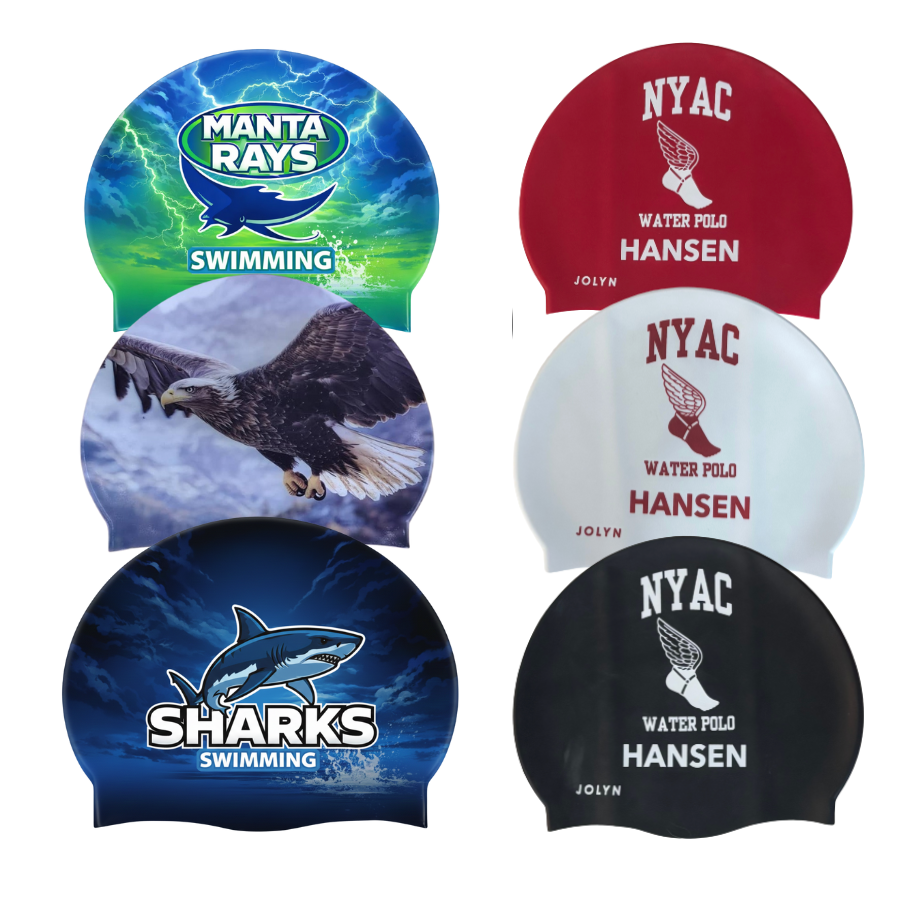 Gear up for race or game day with a precise, comfortable fit. From a basic custom name and logo (silicone & latex) to entirely digitally printed team artwork (silicone only), these caps are a high-performance necessity for teams who want to stand out while sticking together. A true staple for almost all of our aquatics team orders.